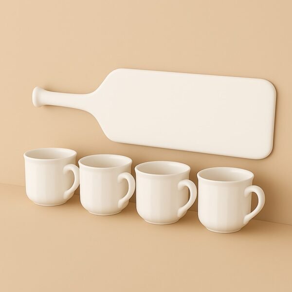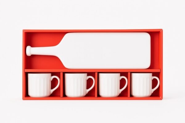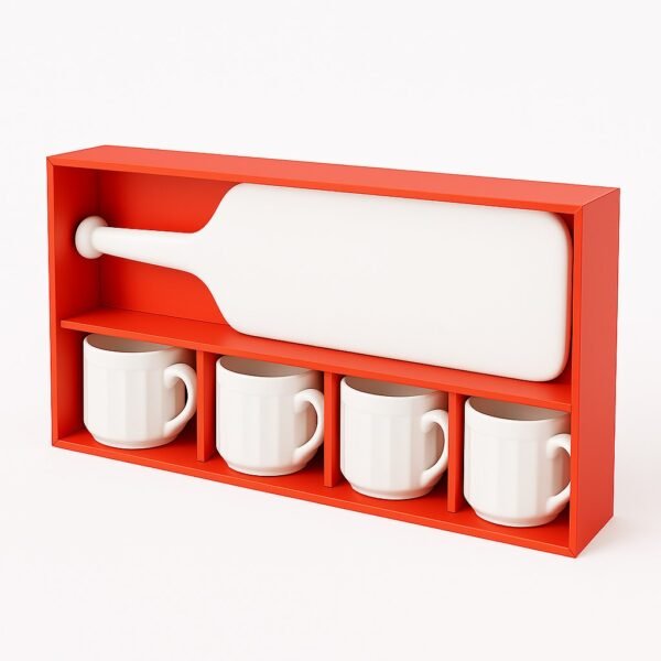 Add a touch of class to your tea or coffee rituals with this beautifully crafted 5-piece ceramic serving set. The set includes four elegant ribbed white ceramic mugs and a long matching serving tray, all nestled in a vibrant red box for a stunning presentation. Whether you’re hosting guests or gifting a loved one, this set blends function with sophistication.