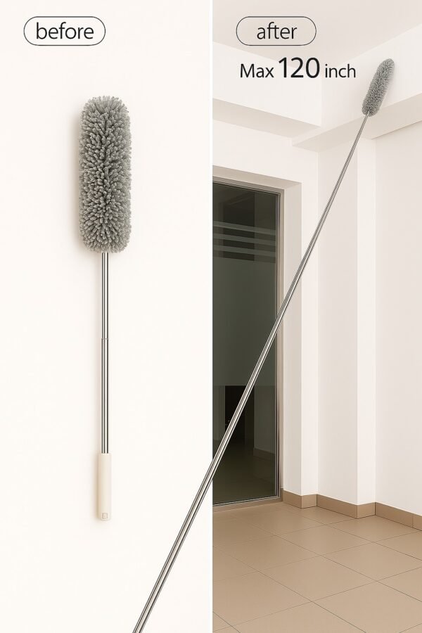 ๐ Extendable Telescopic Handle: Adjustable stainless steel rod extends for high and low cleaning, perfect for ceilings, light fixtures, baseboards, and more.